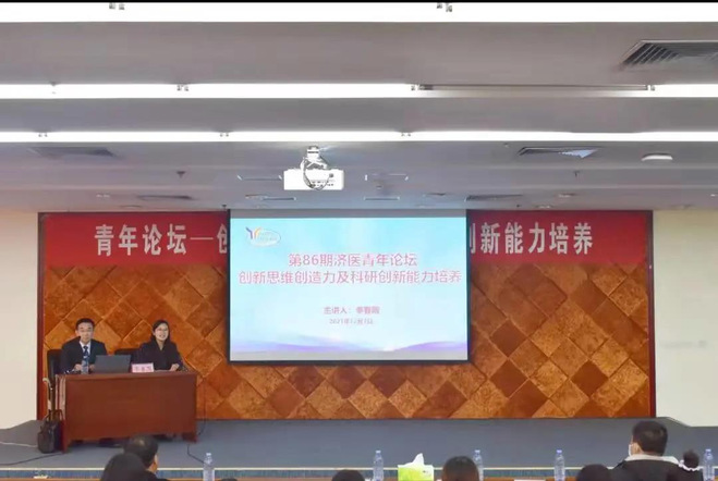 12月7日,由校团委主办、第二临床医学院承办的第86期济医青年论坛在太白湖校区举办。济宁医学院附属医院教学处处长、心电诊断科主任李春雨受邀做客本期论坛。李春雨主任以《创新思维创造力及科研创新能力培养》为主题,结合创新实例,从如何启发创新思维、创新的意义、创新感悟分享、创新性思维方法简述、科研培养的方法和途径等方面进行交流,讲述生动、内容深刻,为现场师生上了一堂生动的“思政课”,对强化科研育人实效具有重要的意义。太白湖校区200余名师生参加活动。