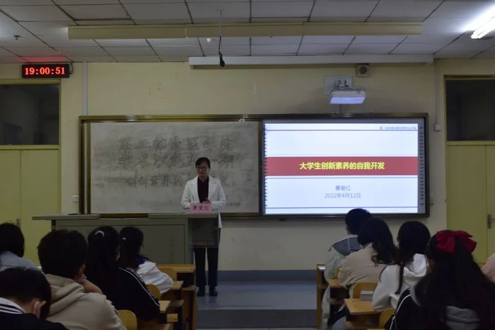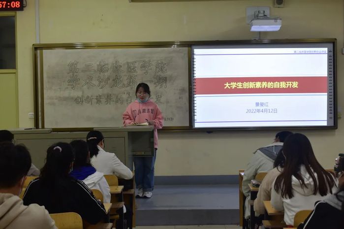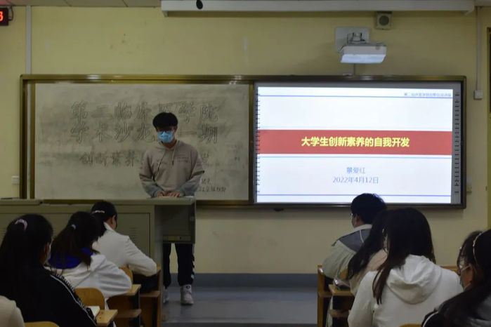 为贯彻落实国家双创教育工作部署,响应全省科技创新文件精神,深化学校双创教育改革,进一步推动我院创新教育工作。4月12日,我院举办题为《大学生创新素养的自我开发》的学术沙龙活动,第二临床医学院副院长景爱红主讲。