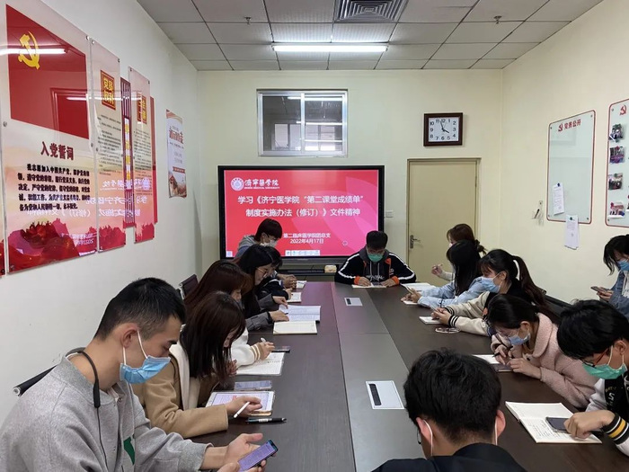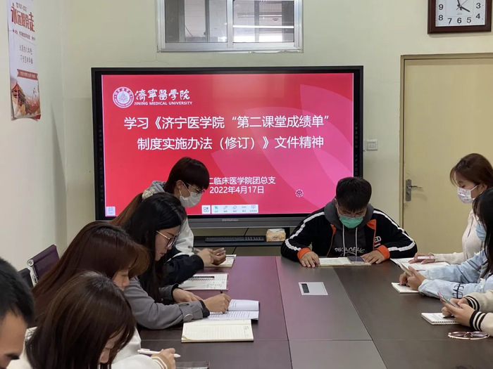 为全面贯彻落实《中长期青年发展规划(2016-2025年)》《深化新时代教育评价改革总体方案》等要求,深入贯彻执行共青团改革方案,全面推进“第二课堂成绩单”制度。4月17日,第二临床医学院开展《济宁医学院“第二课堂成绩单”制度实施办法(修订)》专题学习。