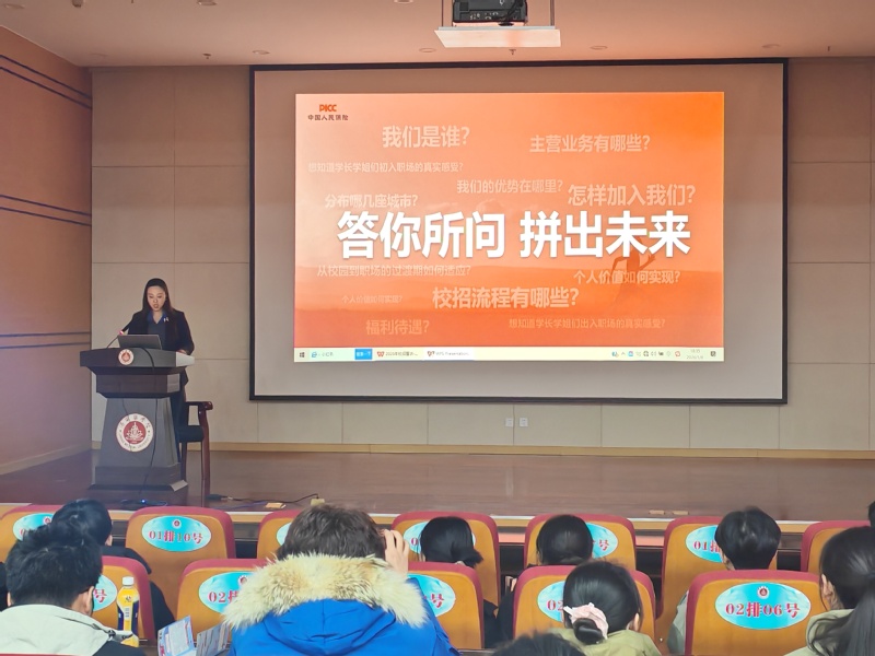 为更好地拓宽2026届毕业生就业渠道,实现高质量充分就业,医学影像与检验学院邀请中国人民财产保险股份有限公司济宁分公司于1月6日开展招聘宣讲会。